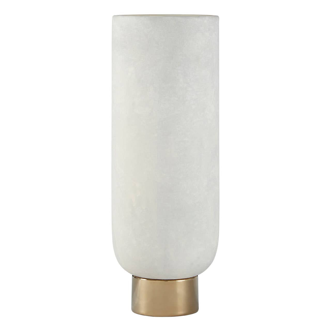 Elevate your space with the Callie small pedestal vase, featuring an elegant white body paired with a striking round gold...